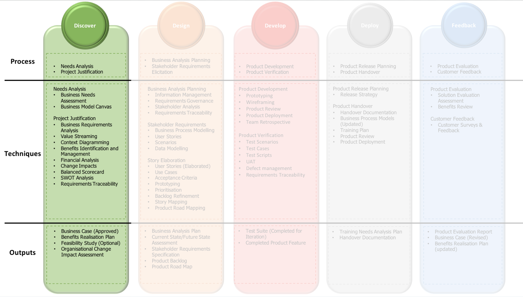 Needs analysis forms the initiating task in the plan-driven discovery phase. It focuses on the goals, aspirations and needs of the users/stakeholders. It identifies the problem or the potential opportunity. These needs feed into the stakeholder requirements analysis in the plan-driven design phase.